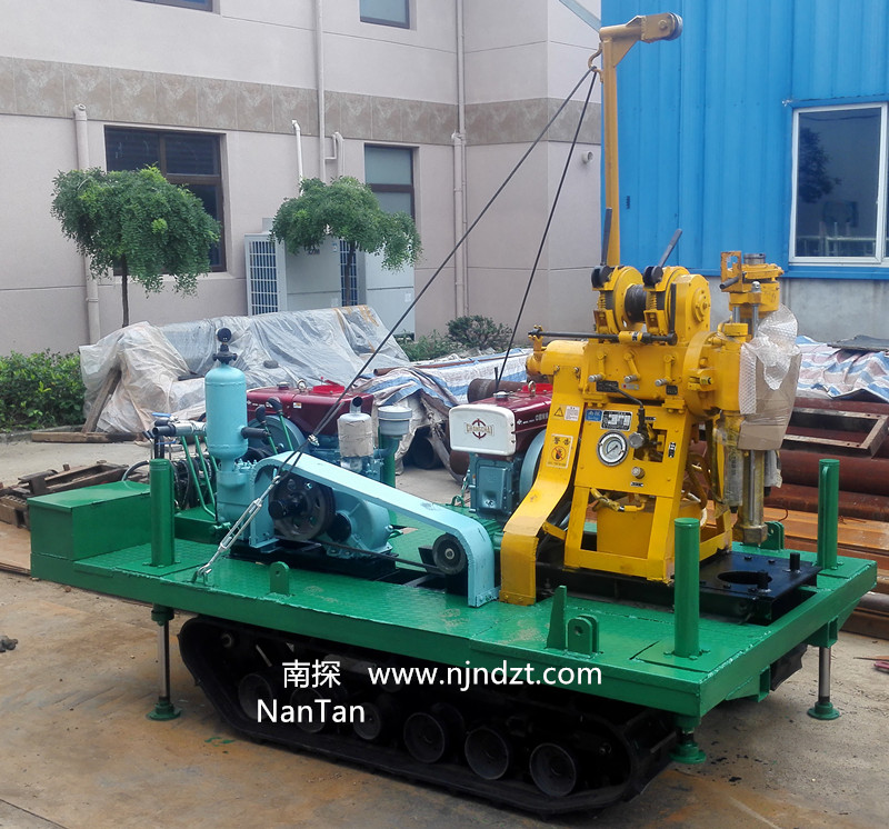 4鉆機(jī)、水泵、塔架一體,搬家方便快捷,可自行上下汽車搬家時(shí)鉆桿鉆具等一切東西均可放在履帶底盤上一次運(yùn)走。