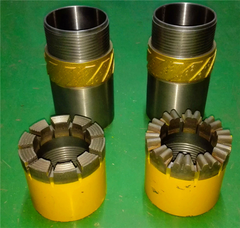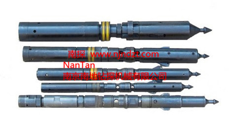 取芯鉆桿鉆具是一種不提鉆而從鉆桿內(nèi)撈取巖芯的鉆井工具。它具有鉆進(jìn)效率高,巖心采取率高,鉆頭壽命長,勞動強(qiáng)度小等優(yōu)點(diǎn)。隨著鉆孔深度的加深,其優(yōu)勢更為明顯。整套鉆具包括鉆具總成、鉆桿、加厚鉆桿、提引器、打撈器、夾持器、電動或柴油機(jī)驅(qū)動繩索絞車和金剛石自由鉗等部件。