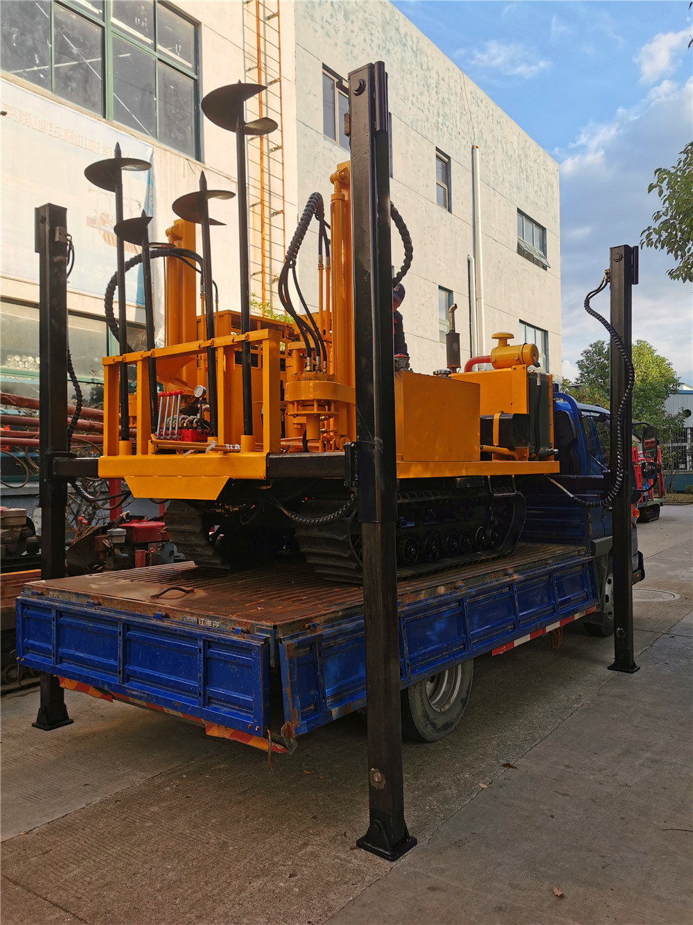 6、支腿油缸:4個,缸徑90mm,桿徑:60mm 行程:1500mm 單缸支承力100KN單缸頂起力:80KN