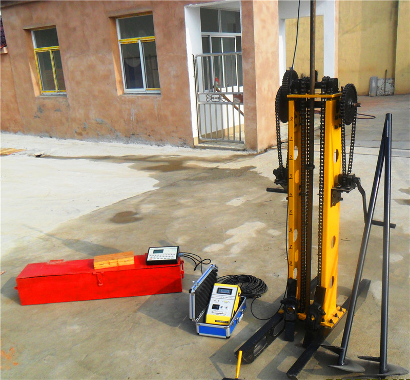 本機(jī)結(jié)構(gòu)合理、外形美觀,使用時(shí)不受電源限制,機(jī)動(dòng)靈活、性能穩(wěn)定可靠。汽油機(jī)傳動(dòng)快速高效,可以隨不同的貫入阻力隨意調(diào)正速度,既可以汽油機(jī)傳動(dòng)也可以人工手搖兩種選擇靜壓方式,其極限貫入深度可達(dá)30米-35米。此機(jī)可與目前國(guó)內(nèi)外廠家生產(chǎn)的人工數(shù)字記錄儀、靜探微機(jī)(自動(dòng)記錄儀)等配套并進(jìn)行量測(cè)或記錄。    該機(jī)可進(jìn)行土質(zhì)地基的承載能力或抗剪強(qiáng)度測(cè)試,測(cè)量地基土的比貫入阻力Ps、錐尖阻力Qc雙橋、側(cè)摩擦力Fs;也可進(jìn)行十字板剪切試驗(yàn),求飽和軟粘土的不排水抗剪強(qiáng)度Cu,從而為地基基礎(chǔ)的設(shè)計(jì)提供參數(shù)(需要配置蝸桿裝置、傳感器、十字板頭)。