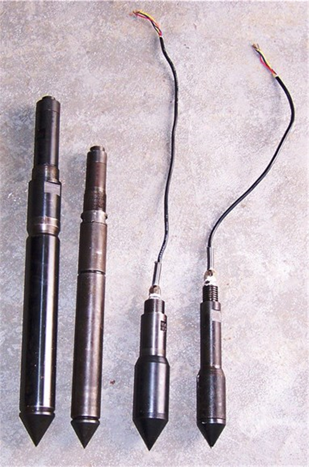 探桿:Φ25*1米(或Φ28*1米),優(yōu)質(zhì)地質(zhì)專用無縫鋼管。地錨直徑:200、250mm,帶穩(wěn)固可靠的新型地錨夾持器和地錨扳手,穩(wěn)定可靠,一勞永逸。配用探頭:10cm2單橋探頭、10cm2雙橋探頭、電測(cè)十字板探頭(50*100*2mm)。十字板剪切范圍:0~128 KPa。配用電纜線:四芯屏蔽電纜線、八芯屏蔽電纜線。鏈條:小傳動(dòng)鏈條:10A—1,68節(jié)2條,大傳動(dòng)鏈條:12A—1,148節(jié)2條。儀器:JC-H2型靜力觸探儀(人工記錄儀,單橋探頭專用);KE-2101型靜探微機(jī)(自動(dòng)記錄儀,帶U盤,單橋探頭專用);KE-2103型靜探微機(jī)(自動(dòng)記錄儀,帶U盤,單、雙橋探頭都可以)。