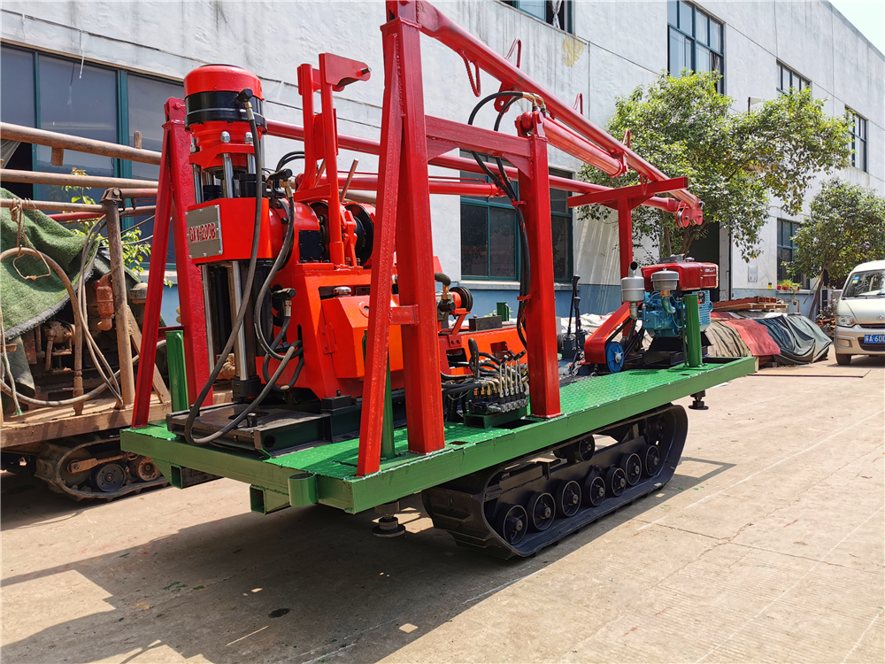 GXY-200B-L-02-B-STRZT履帶鉆機(jī)橡膠履帶底盤、動(dòng)力(柴油機(jī)或電機(jī))GXY-200B鉆機(jī)、鉆機(jī)平臺(tái)、液壓支撐腿系統(tǒng)、人字形全液壓起落架、泥漿泵(單缸或雙缸共同組裝在一個(gè)機(jī)架上。鉆機(jī)一個(gè)動(dòng)力柴油機(jī)或電機(jī)),橡膠履帶底盤、泥漿泵一個(gè)動(dòng)力柴油機(jī)或電機(jī))帶動(dòng),互不干擾,避免單動(dòng)力變換負(fù)荷造成磨損影響施工。
