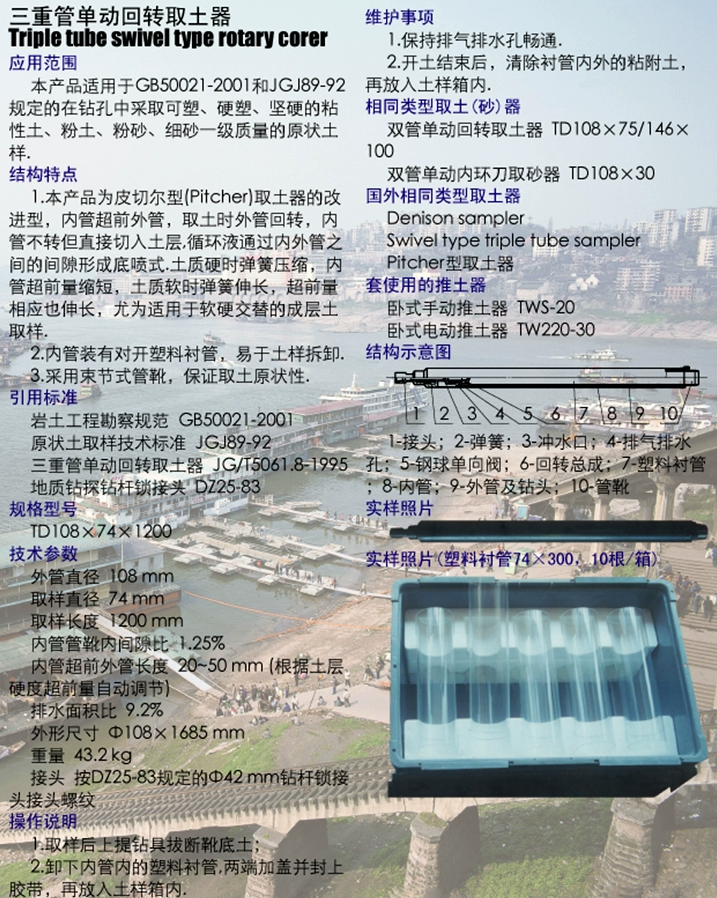 三重管單動回轉(zhuǎn)取土器