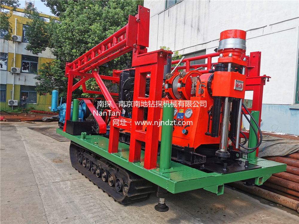 鉆機(jī)機(jī)組由履帶底盤、柴油機(jī)、升高型液壓支腿、鉆機(jī)、折疊式液壓起落鉆塔組成,共同組裝在一個(gè)機(jī)架上。鉆機(jī)可以選擇柴油機(jī)或電動(dòng)機(jī)、履帶底盤及液壓支腿由獨(dú)立柴油機(jī)帶動(dòng)、互不干涉。